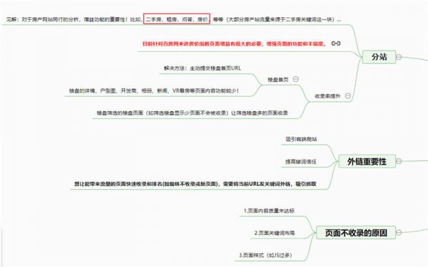 上方的红标处是我当时提了很久的。我们公司现在的版块还只是新房,众所周知权重是由关键词数组成。有指教的关键词越多,那么权重越高!而我分析到房价和二手房,租房,问答都没做。