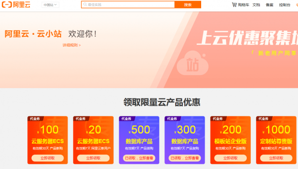 阿里云官方云小站是阿里云官方推出的综合优惠平台,平台包含了代金券,限时秒杀,新用户1折,企业新用户特惠,老用户5折等多个优惠购买专区,云小站所展示的阿里云服务器购买价格均是当下阿里云各个促销活动中的最低价,想要优惠购买阿里云服务器等产品,只需上官方云小站即可。