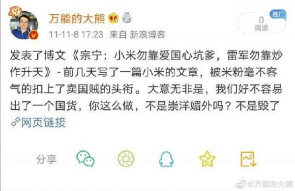 这本来是一篇随笔,却遭到了大规模的粉丝辱骂,一群MIUI的粉丝痛斥我是卖国贼,不爱国,不支持国货,崇洋媚外等之类的。让我非常诧异,手机还没出来呢,至于这么骂我么?这个事情更搞笑的地方则在于,十年后的米粉,天天挂在嘴边嘲讽的却是“不买华为不爱国”。爱国这个东西真是一块砖,米粉想要砸谁就往谁那里搬。当然在这个变化背后,我们也可能看到小米营销这十年的一个变化轨迹。