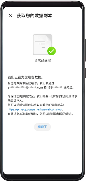 华为终端云服务一直以来坚持以“透明可控”的原则处理用户的个人数据,并高度重视用户数据主体权利的问题,积极制定了查询个人数据的自动化解决方案,为用户提供更加便捷的行使数据主体权利的方式。