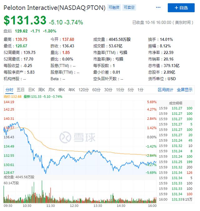 然而,生活从不缺少戏剧性,股市也不缺少传奇。自今年4月底以来,Peloton的股价一反此前低迷的态势,开始呈现持续增长态势。而自今年年初以来,Peloton的股价涨幅达380%。截止美股研究社发稿,Peloton周五收盘股价为131.33美元,市值为379.13亿美元。