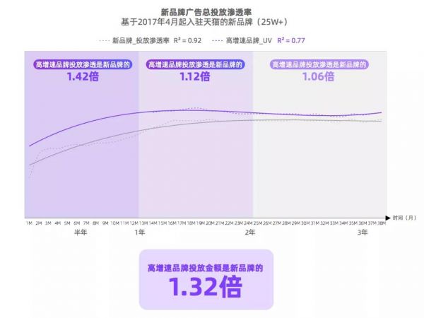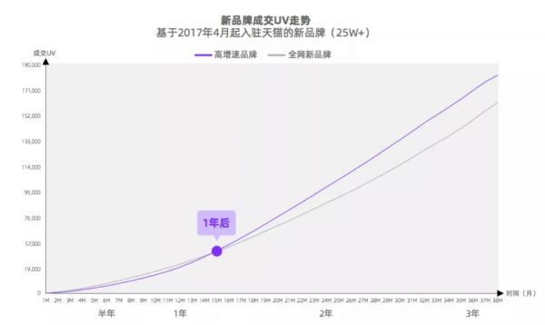 阿里官方报告披露这个数据,其实算负面消息,但他们还是公布出来了。因为他们发现,新品牌入驻1年是个关键的时间点,如果熬过去了,一些人会迎来丰厚的回报,晋升高增速品牌。