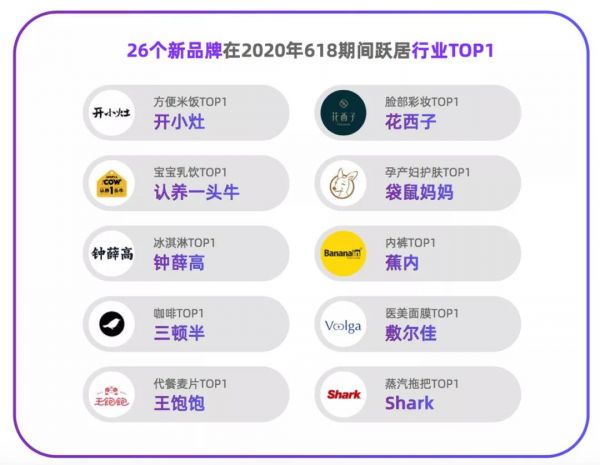 数据显示,近年天猫快速冒头了一批新品牌。以今年618为例,有26个新品牌跃居行业TOP1,这是过去几年不曾出现过的。