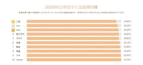 近期,鲁大师Q3季度报告公布了手机温度榜,其中包括了手机品牌日均低温榜、手机满载低温、手机日常低温榜和日均高温排行、峰值高温排行等榜单情况。在本次手机品牌日均低温榜中,三星以33.89的优秀成绩获得了本次的冠军。三星能有如此好的成绩在于三星品牌对手机散热技术的格外关注。