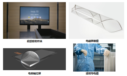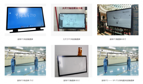 Metal Mesh 32寸至86寸大尺寸触控模组、折叠手机电容屏、86寸至120寸纳米金属大尺寸触控模组、ITO1.54寸至55寸全尺寸触控模组。