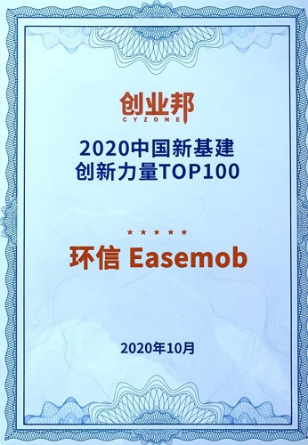 一、领先是一种惯性,环信入选“2020年中国新基建创新力量百强”