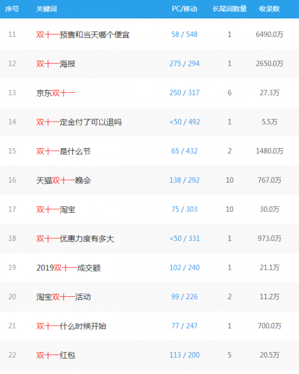 还是用上次分享的5118关键词玩法,从百度收录的知乎问题链接里找出和「双十一」关键词相关的问题。
