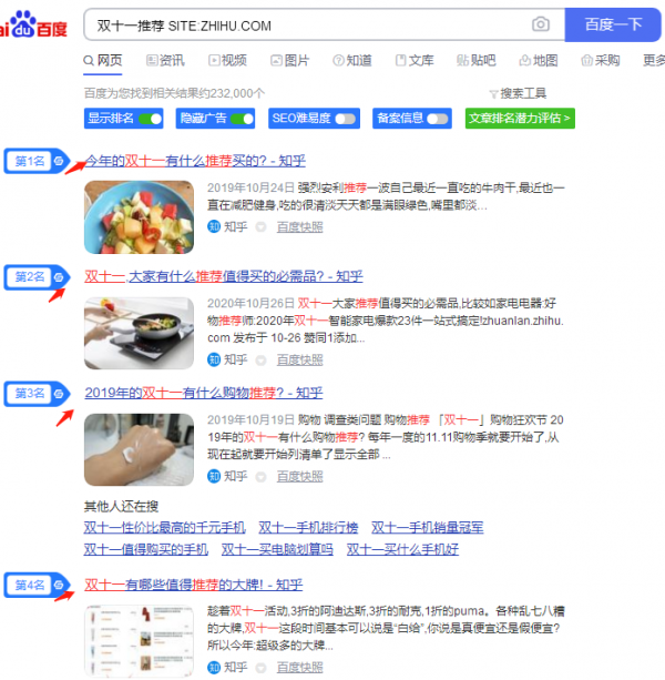 矩阵回答:全部回答套用一个模板,流水线生产内容,不同的商品套用同样的格式,仅内容上有所差异化。思路是以量取胜。精选化运营:花一些时间制作一个精品内容,长内容,字数多,配图有趣,将这个回答链接不断穿插在不同的问题下面,配上少许的文字。自问自答的操作模式:利用采集工具找出用户习惯搜索的长尾关键词,然后自己找人提问(QQ群找),发布以后第一时间进行回答,利用这种玩法批量铺设双十一购物相关的关键词,然后运气流被收录上排名。当然这种玩法也可以用来操作文章,问题关键词其实起的就是一个文章标题的作用。