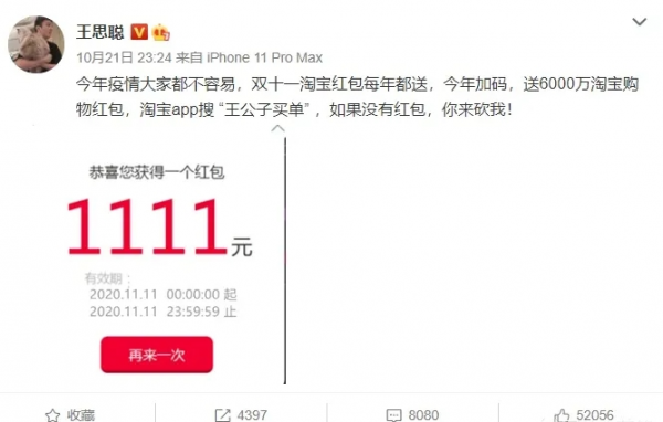 这里的口令文案尽管选择简单易记的,比如「xxx的红包」,「xxx买单」,既具备一定的诱惑性,粉丝也容易记住名字。