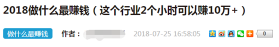比如说上图这个标题,可以看到“做什么赚钱”这个需求是满足了,基本上没有太大的问题并且还在标题上加了时间,让用户看起来是最新的赚钱方法,但是在后面加了一句“2小时可以赚10万+”其实这就不推荐了,如果是我,我不敢看这篇文章,因为看了这个标题就知道是吹牛的,及时不是吹牛的,那可能是违法的,可能是要求很高的。但是如果在标题上说“一天可以赚500”那么很多人就会点击了。