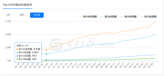 上面是久闻网的关键词前100名的排名,可以看到短短2个月的时间,从4000个关键词上涨到1.5万个关键词,两个月涨了1万个关键词,这就是方案霸屏的效果。