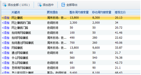 这个工具操作非常简单,直接输入你想查询的主词,然后所有的长尾词都出来了,但前提是很多词是被屏蔽的,这些词基本是百度竞价不做的词,毕竟这个工具是用来提供给竞价用户的,至于你自己的词是否能查询,自己可以去试一下。