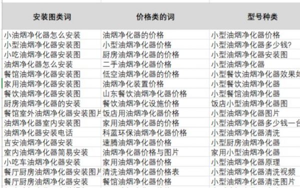 当我们获得大量的关键词数据后,我们经过筛选得到一些与自己的企业产品相关的关键词,去掉垃圾词,关键词词库表示例如下: