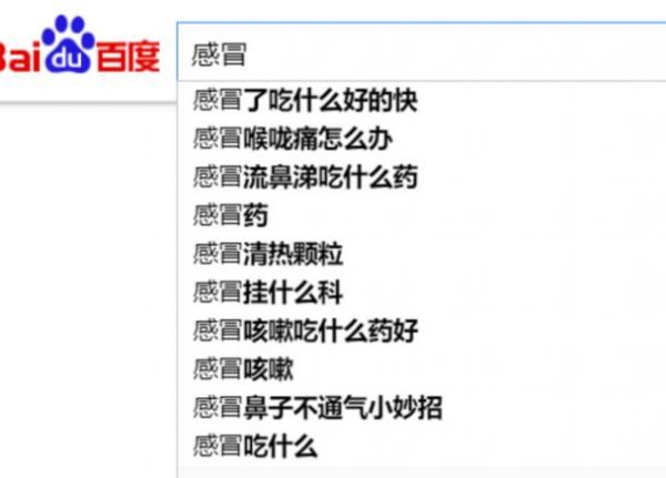 比如:搜索感冒,可以看到下拉推广中非常多的长尾关键词,在底部相关推荐中也有大量的相关词,供我们选择。