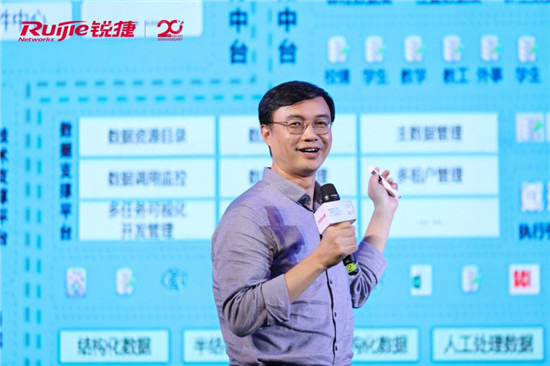 在锐捷网络睿智事业部智慧校园解决方案总监庞臣看来,未来高校信息化建设更多是以“服务+数据”去推进。过去,“服务”在高校信息化中以“支撑”为主,在未来则向“主动服务”转变。即以人为核心,以IT、DT技术为基础去持续构建校园的服务体系,提升学校的治理能力,并且为教、学、管、研各个维度的管理优化、支撑提升对应的价值和效益。