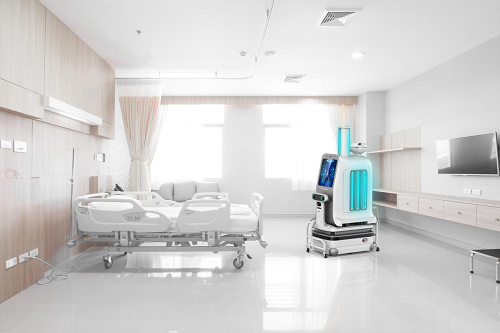 而烛光高值耗材医疗配送机器人、烛光消毒测温机器人则专为医院场景而设。坎德拉科技市场相关负责人孙锐勇介绍,坎德拉科技智慧医疗服务方案,通过医院内智能转运业务、药品耗材智能立体仓、院感智能消毒业务,可以有效提高医院内部物流与院感消毒场景的信息化与智能化。烛光高值耗材医疗配送机器人主要针对医用专科治疗用材料,如心脏介入、外周血管介入、人工关节等,具备多维授权、实时盘点、多屏交互、控温等功能。烛光测温消毒机器人,有紫外线消毒、空气消毒、测温三种功能。机器人通过超微雾化技术,杀灭能力大于6log。