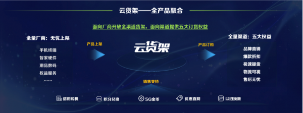 在“云货架”方面,推动“全产品融合”。面向厂商和应用服务商,联盟将围绕“手机终端、智家硬件、潮品数码、权益服务”等产品大类,实现无忧上架。面向渠道,联盟将提供“品牌直销、爆款折扣、极速提货、物流可视、售后无忧”五大订货权益。面向客户,联盟将提供 “信用购机、积分兑换、5G金币、优惠直降、以旧换新”五大优惠,促进全产品的融合销售。