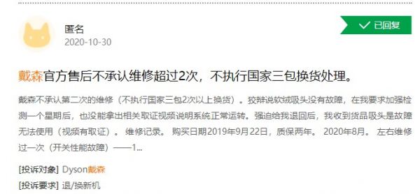 为了找到真正的解决渠道和抱团取暖的地方,我在多次与戴森客服沟通无果的情况下打开了黑猫投诉。