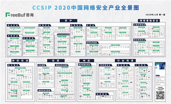 据悉,此次《CCSIP 2020中国网络安全产业全景图》共涵盖19个一级分类,79个二级分类,覆盖550+家安全厂商,展现2000余次。所有调研及设计工作由国内领先的网络安全行业门户FreeBuf咨询团队主导完成,上百家厂商提供数据支持。旨在为企业安全建设产品选型提供参考。