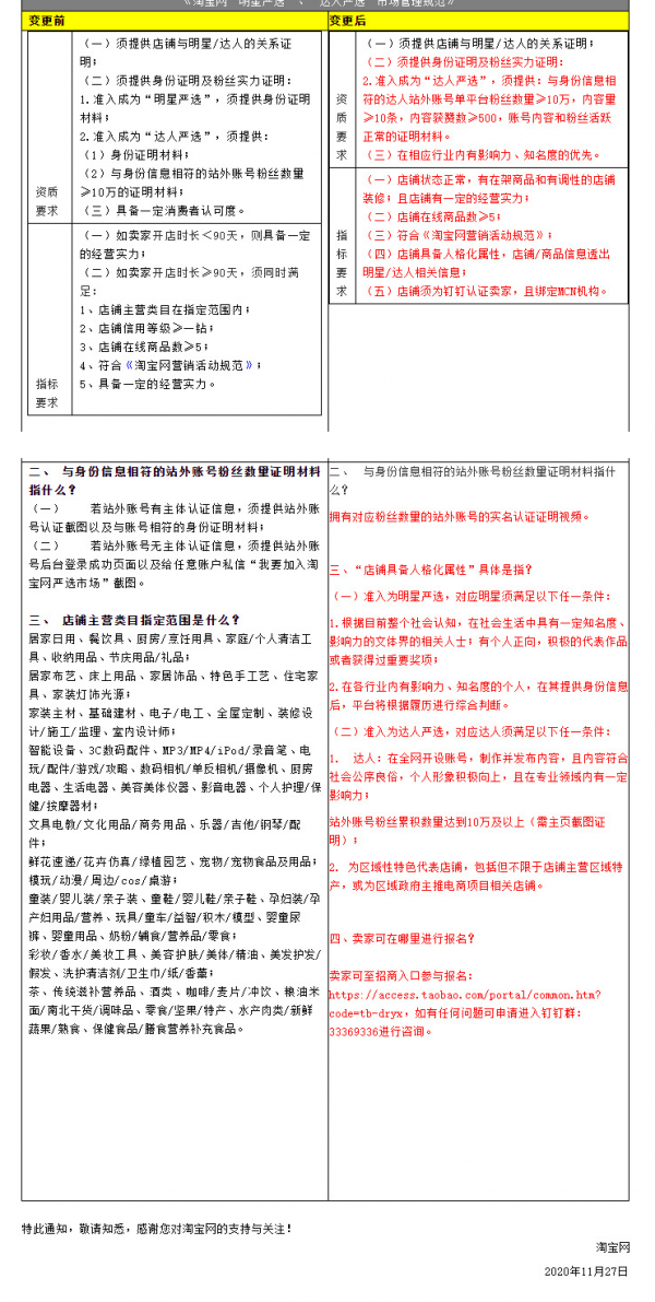 商家注意 淘宝网明星严选 达人严选市场管理规范变更