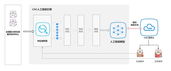 在安全方面,通过CAC反垃圾处理中心平台高效拦截垃圾钓鱼邮件。在线对最新垃圾邮件样本进行实时分析,以智能算法学习+人工严格审核双重服务机制,高效识别拦截垃圾邮件。同时通过深度学习主动迭代算法,不断更新钓鱼邮件识别能力,针对打击垃圾钓鱼邮件,保护企业信息安全。
