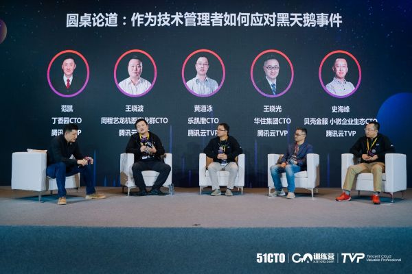 同程艺龙机票事业群CTO、腾讯云TVP 王晓波认为,要用黑天鹅心态去看待黑天鹅事件。乐凯撒CTO、腾讯云TVP 黄道泳回顾为应对疫情,他的团队做了两件事:解决员工恐慌的心理以及快速启动私域流量建设。华住集团CTO、腾讯云TVP 王晓光分享了面对疫情对住宿业的重创,他的团队紧急盘点了所有酒店的情况,并推出无接触服务,团队内部也紧急开启远程办公模式。贝壳金服小微企业生态CTO、腾讯云TVP 史海峰介绍了贝壳上半年所做的VR看房、直播讲房以及线上贷签等数字化服务的创新尝试。