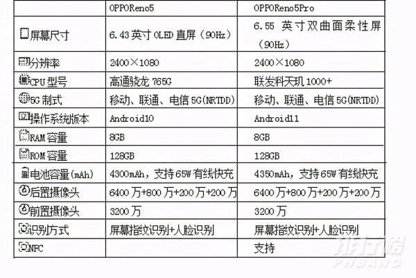 1.opporeno5和opporeno5pro参数配置表