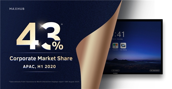 根据全球调研机构Futuresource数据,2020年上半年(1-6月)在商用可交互平板领域,MAXHUB 凭借43%的市场份额在亚太区持续领先,MAXHUB 在全球范围内市场份额也达到27%,国内海外市场均表现亮眼【4】。
