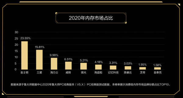 而在内存市场占比榜中可以看出,金士顿也是远超三星、海力士等品牌成为2020年市场份额最高的品牌。