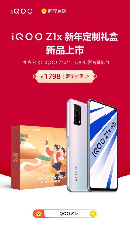 据了解,这款定制礼盒是由iQOO和苏宁电商平台联合推出的iQOO Z1x新年定制礼盒。对于iQOO Z1x相信大家都不陌生,作为市场上的热门机型,iQOO Z1x多次在苏宁电商平台斩获销量&销售额双冠军,可以说是苏宁电商平台最畅销的5G手机之一。而该机之所以如此备受用户喜爱,与其全面且出色的体验有着密不可分的联系。iQOO Z1x不仅拥有非常出色的性能实力,还支持最高120Hz 屏幕刷新率,能够为用户带来十分出众的视觉体验。并且,该机还内置了5000mAh大容量电池,以及配备了33W 闪充技术,从而让用户拥有了更加持久的续航体验。
