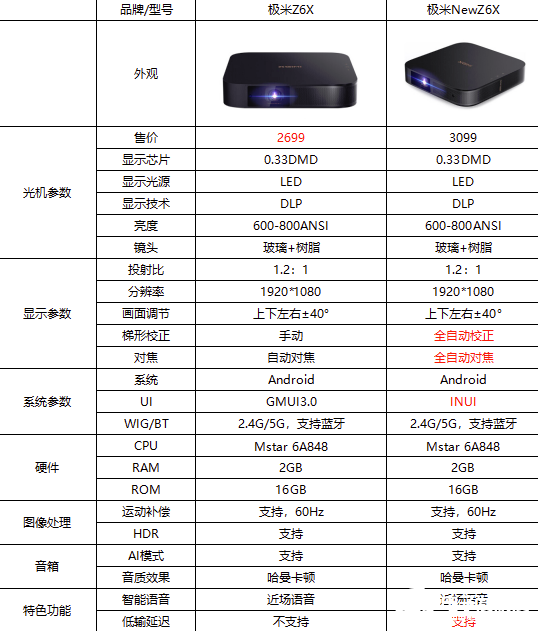 对于数码产品而言,任何脱离参数的讨论,都是耍流氓。所以,先看看极米Z6X的参数表现如何。