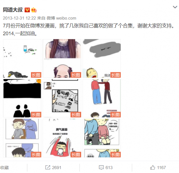 2013年7月开始,同道大叔在微博试水了一些漫画,这时候的同道大叔还没有往星座领域发展的意向。