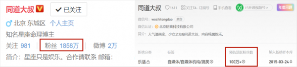 不管是在哪个热门平台,你都能找到同道大叔的账号,在微博上粉丝高达1857万。
