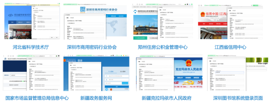 沃通CA于2019年开始联合全国CA机构推广国密SSL证书全生态应用并取得显著成果,目前沃通国密根证书已经与全国十余家CA机构达成国密中级根合作,签发的国密SSL证书在全国十几个省市和地区的政务服务网站中得到广泛使用 ,拥有大量成熟应用的客户案例,覆盖政务服务网、住房公积金管理中心、公安机关、公共服务机构、教育机构等多个领域。