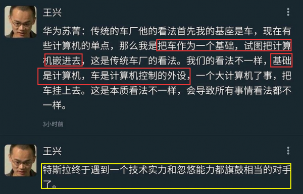 美团创始人王兴点评此事时用了一句略带调侃的评语:特斯拉终于有对手了。这也透露出业界对于华为切入新能源电动车这条赛道本身以及其与传统车企在认知差距上的认可。