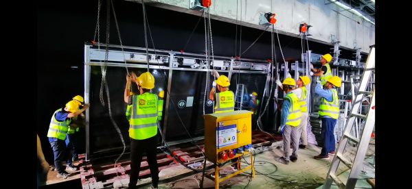 今年4月,模块化装配式站台门在广州轨道交通18号线沙溪站顺利组装。从4月5日开始进场,模块化站台门通过工厂货车运输至铺轨基地,由基地龙门吊、轨道工程车运输到站台,工作人员再进行安装工装。仅用了三天时间,于4月8日成功安装,标志着模块化装配式站台门在国内轨道交通领域的首次应用。