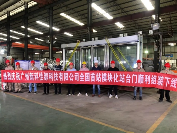 为解决以上难点、痛点,2020年3月,广州地铁集团有限公司、广州地铁设计院联合佳都科技开展模块化站台门研发,团队仅仅通过9个月时间就攻克了诸多设计难点,包括模块化组成、运输工装、安装工装等,通过三维建模、力学有限元分析,反复考察、修改和验证,从无到有,最终实现了传统站台门安装模式的突破。模块化样机已于2020年12月25日成功出厂并通过各项验收。