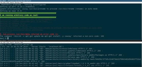 以CVE-2019-3462APT远程代码执行漏洞为例,攻击者一旦进入网络环境中,便可以利用中间人攻击或者一个恶意的下载镜像来触发该漏洞,导致远程代码执行,进而进行横向攻击。