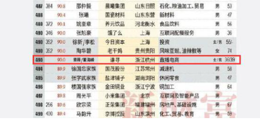 A5创业网(公众号:iadmin5)5月19日报道:最近《新财富》发布了全国富豪榜单,头部主播黄薇(薇娅)及其丈夫董海峰以90亿元财富值成功登上第490位,与“老干妈”创始人陶华碧排名相同。