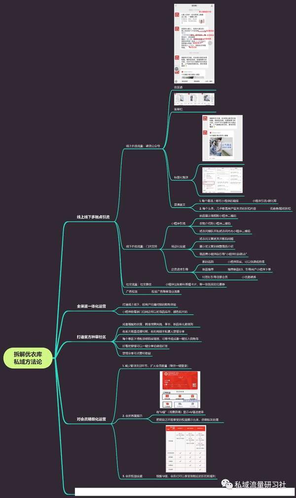 优衣裤私域流量运营导图还需要注意的是,我们常常说私域流量这个词,其实更正确的定义并不是私域流量,而是私域顾客,此中的流量并不是冷冰冰的数字,而是活生生、热乎乎的顾客。应该用“人”的思维运营“流量”,而非以“数字”的思维运营“流量”。其潜台词是,价值是对应“人”的,而非对应“数字”的,数字讲究的是操作,唯有人才讲究价值。