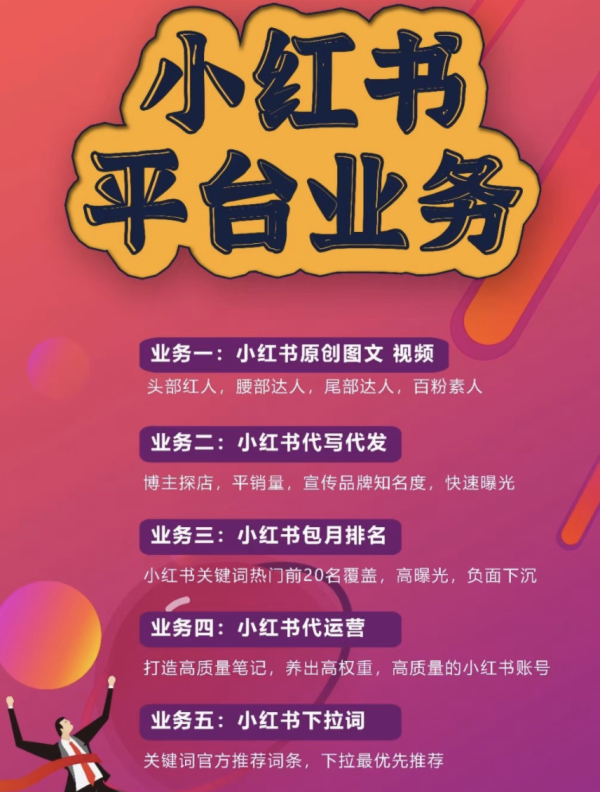 这是一些小红书第三方服务公司的业务清单,其中第三项就是我们刚才说的笔记排名。