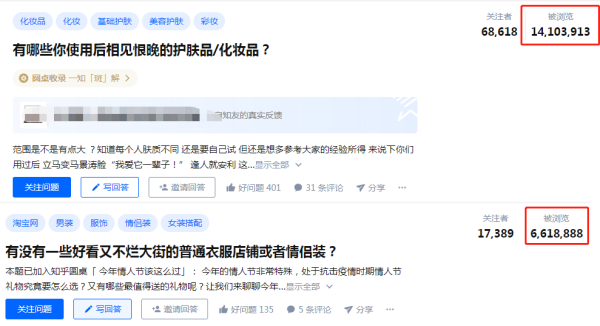 而知乎却不同,百元内的产品有,但少;如衣服、鞋子等淘系产品,几乎没人做好物,都是各种软文广告,还有美妆、护肤等同样如此。