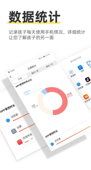 家长可以根据孩子学习和生活需求,家长一键切换学习、娱乐、锁屏和自定义模式,设置手机游戏、APP、小程序、快应用的上网时间和时长,防止孩子沉迷网络。