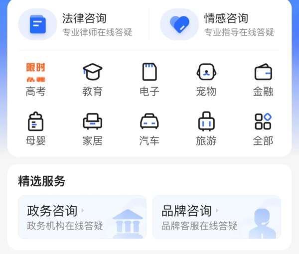 “问一问”14个核心垂类:法律、情感、教育、电子、宠物、母婴、家居、汽车、旅游、植物、职场、游戏、生活、金融。