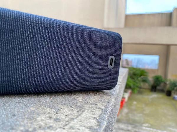 外观上飞利浦S5505呈长条形,大小与保温杯相仿,单手拿取没有压力。金属灰色的哑光材质,搭配黑灰色的布艺设计,给人以低调含蓄的奢华感。机身上覆盖的这层来自丹麦的奢侈品牌Kvadrat的混纺羊毛面料,不仅防水,而且也能有效防止灰尘进入机身。不过在笔者看来,这层织物与其说是带来了温柔舒适的手感,不如说能够很好掩盖掉平时的小磕小碰,起到防划耐磨的作用,让S5505的美感保持更长时间。