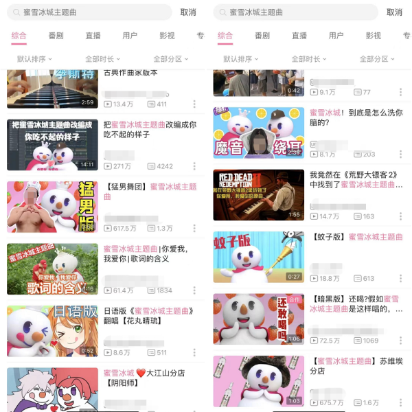 蜜雪冰城恰好抓住了这个需求,再加上B站独一无二的造梗能力和弹幕文化,于是选择率先在B站上发布主题曲。