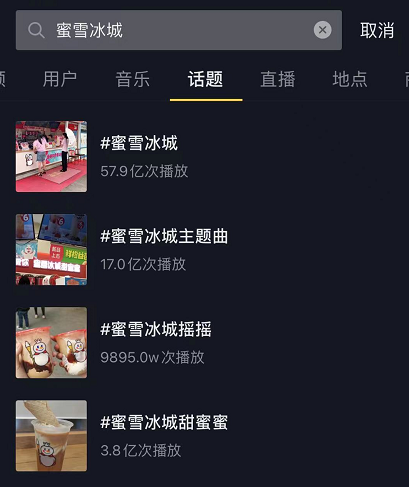在抖音,#蜜雪冰城主题曲#和#蜜雪冰城甜蜜蜜#,两个话题播放量17亿、3.8亿。