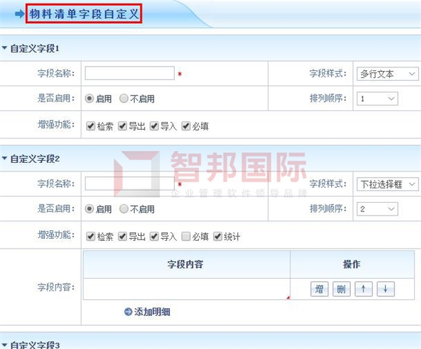 智邦国际工厂ERP管理软件,个性化设置和扩展物料清单字段