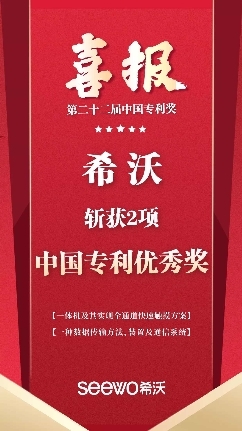 在中国教育信息化行业,希沃是唯一一家在本届中国专利奖中荣获2项中国专利优秀奖的企业。