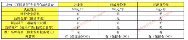 在以往的小红书账号体系中,账号类型一共有以下几种: